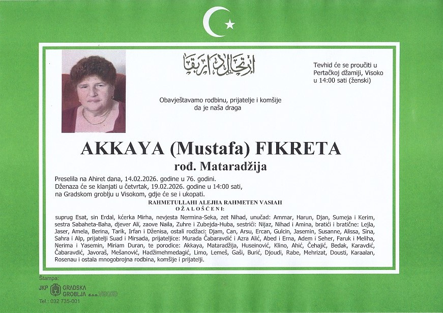 AKKAYA FIKRETA 19.02.2026. u 14:00 sati