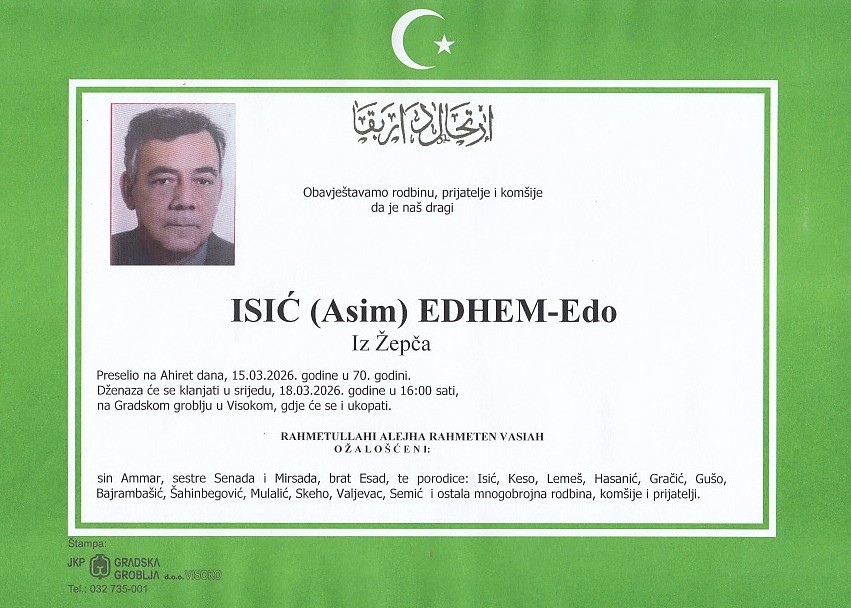 ISIĆ (Asim) EDHEM-Edo 18.03.2026. u 16:00 sati