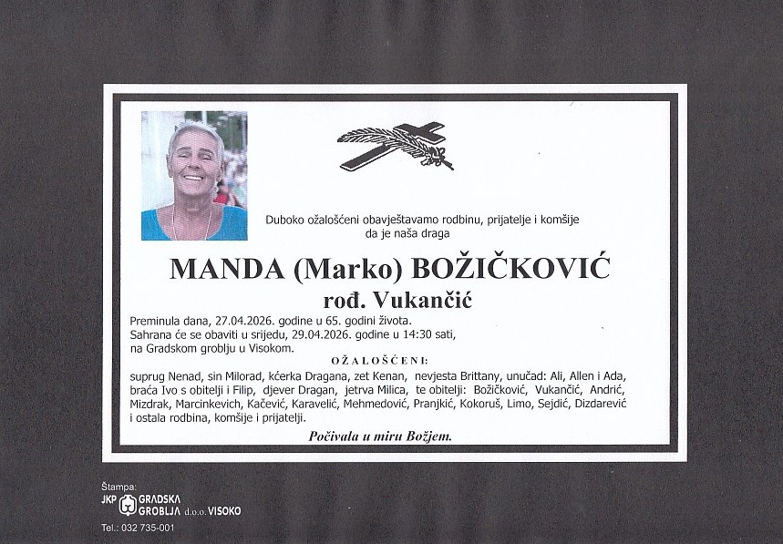 BOŽIČKOVIĆ (Marko) MANDA 29.04.2026. u 14:30 sati