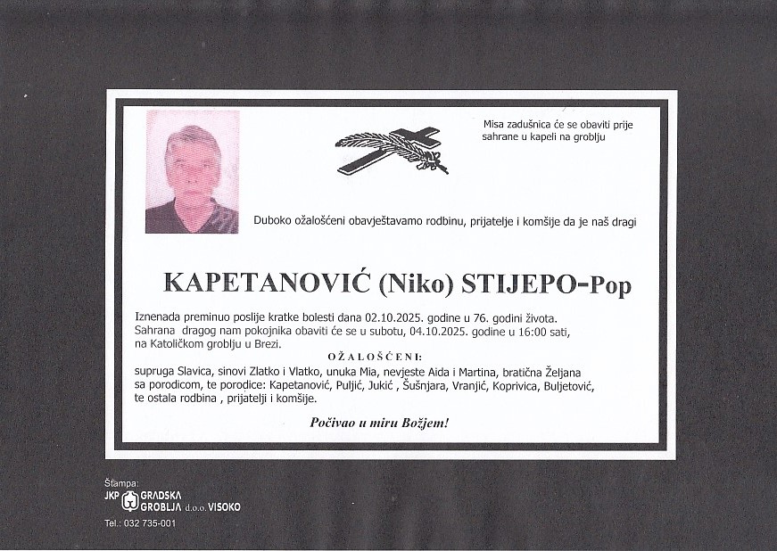 KAPETANOVIĆ (Niko) STIJEPO 04.10.2025. u 16:00 sati