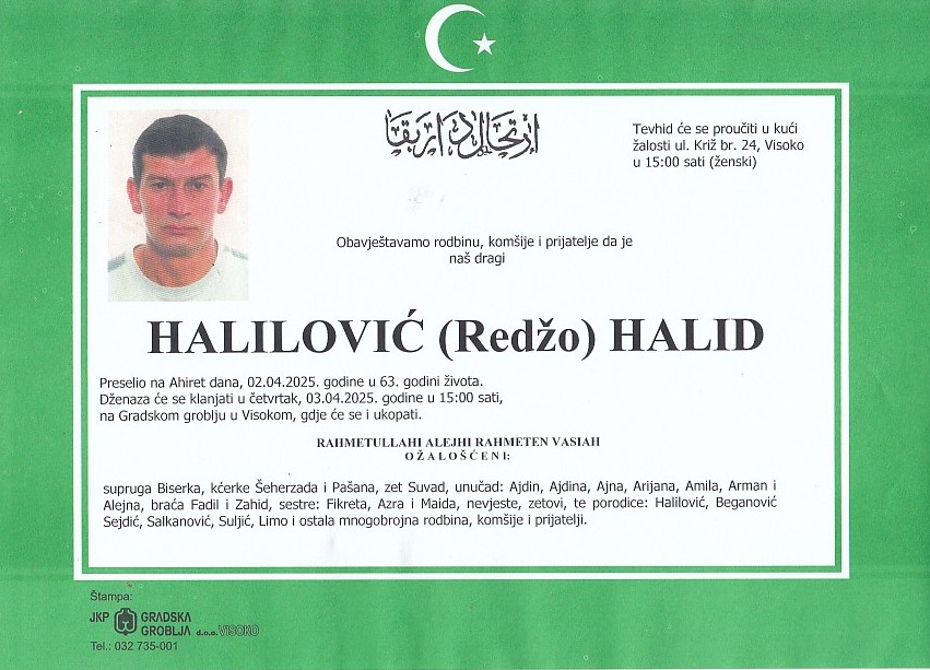 HALILOVIĆ (Redžo) HALID 03.04.2025. godine u 15:00 sati