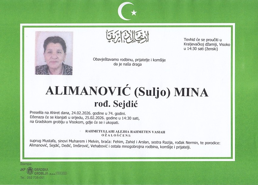 ALIMANOVIĆ (Suljo) MINA 25.02.2026. u 14:30 sati