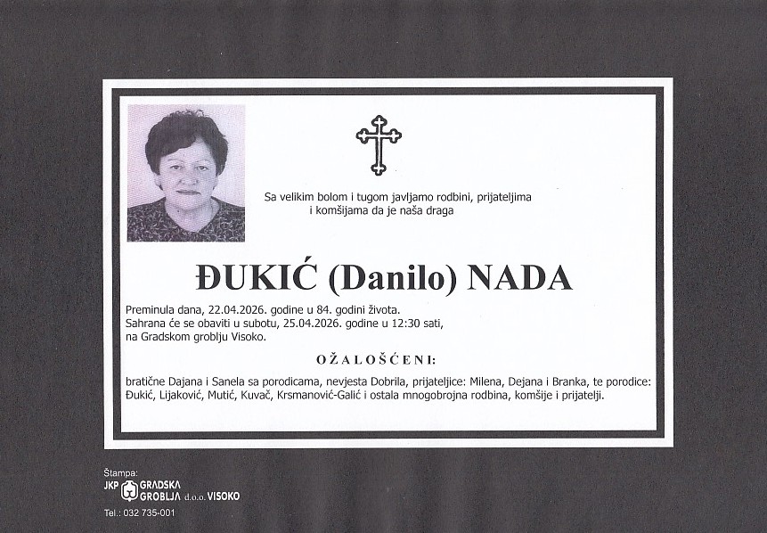ĐUKIĆ (Danilo) NADA 25.04.2026. u 12:30 sati
