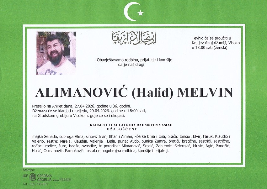 ALIMANOVIĆ (Halid) MELVIN 29.04.2026. u 18:00 sati