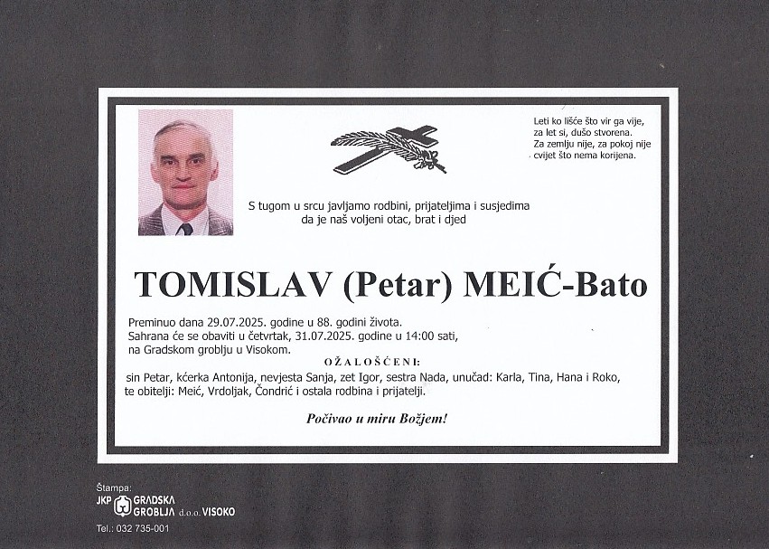MEIĆ (Petar) TOMISLAV 31.07.2025. u 14:00 sati
