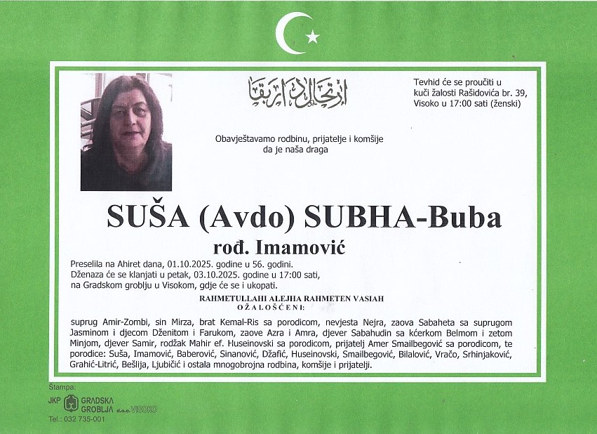 Sljedeći članak: ZEC (Mujo) HAJRUDIN 25.09.2025. u 17:00 sati