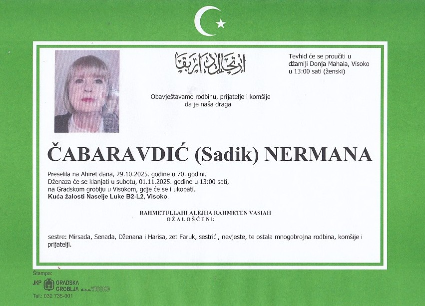 ČABARAVDIĆ (Sadik) NERMANA 01.11.2025. u 13:00 sati