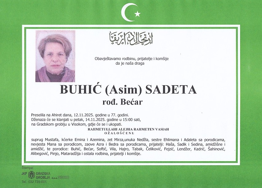 BUHIĆ (Asim) SADETA 14.11.2025. u 15:00 sati