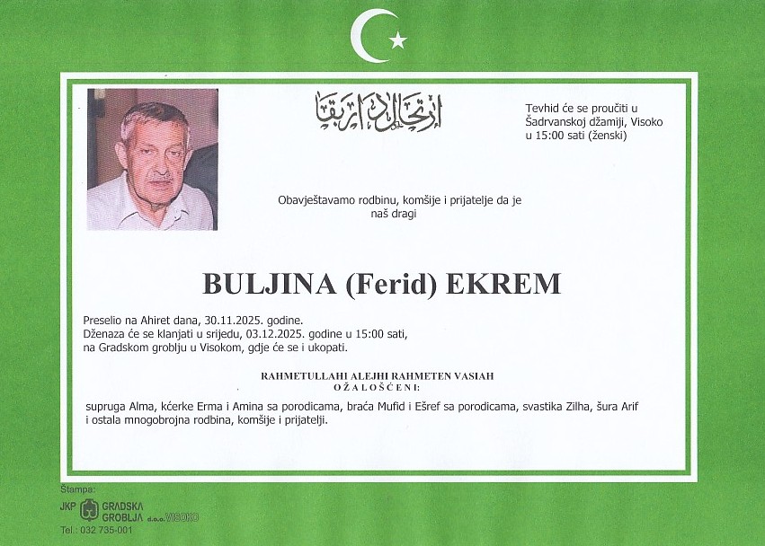 BULJINA ( Ferid) EKREM 03.12.2025. u 15:00 sati