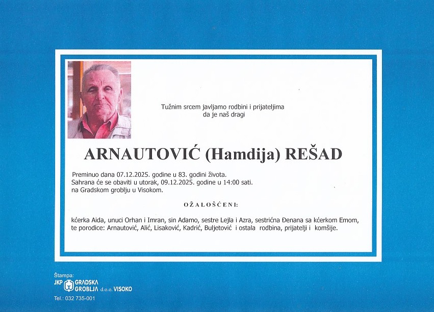 ARNAUTOVIĆ (Hamdija) REŠAD 09.12.2025. u 14:00 sati