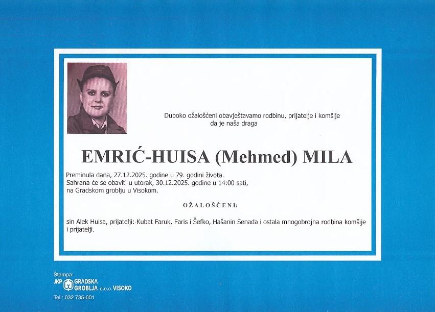 EMRIĆ-HUISA (Mehmed) MILA 30.12.2025. u 14:00 sati