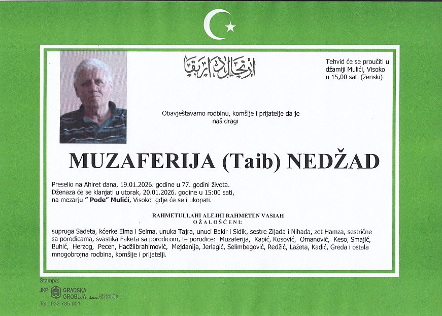 MUZAFERIJA (Taib) NEDŽAD 20.01.2026. u 15:00 sati
